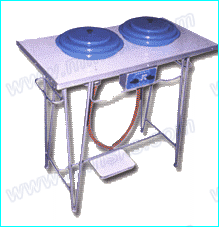 结构特征概述 :抛光机有焊接工作台、工作台面、抛光盘、抛光织物、抛光罩及盖和开关等基本部件组成。工作台面上安装有两个抛光盘,可供两人同时操作,使用十分方便。两台电动机都置于工作台面下部,通过固定片与台面连接。固定抛光盘用的锥套通过螺钉与电动机轴相连。抛光织物通过套圈紧固在抛光盘上。电动机的起停可分别由安装在面板上的开关进行控制,电机启动后,便可用手对试样施加压力在转动的抛光盘上进行抛光。抛光过程中加入的抛光液可通过固定在台面上塑料盘中的排水管排出。抛光罩及盖可防止灰尘及其它杂物在机器不使用时落在抛光织物上而影响使用效果。