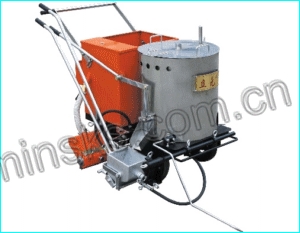 该款推式热熔划线机结构先进,易于使用,对交通妨碍极少,各种类型的标线图案都可施工,是热熔标线施工机械中最常用的一种。该类机本身不带推力,靠人推行走。熔融的涂料经划线斗底部槽口均匀流出,形成边齐,首尾齐,具有立体感的成型标线,其宽度为15-20cm,厚度根据需要可微调。